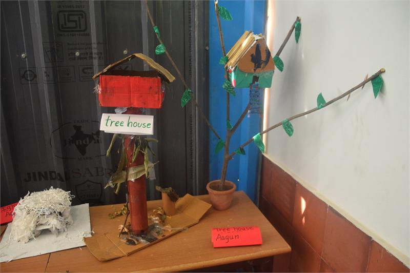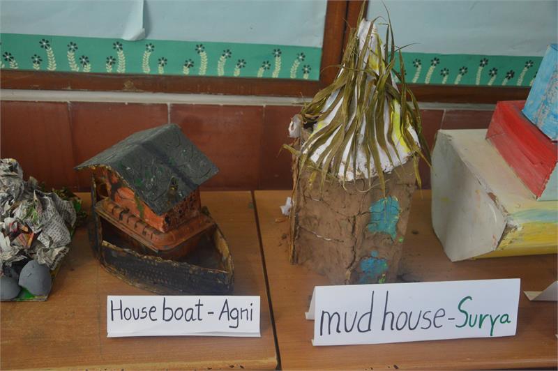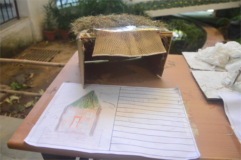 During the nature walk in Shikshantar, children observed different types of houses that animals live in, such as ant hills, nests and beehive. Their curiosity arose as to know how are houses built and why. Looking around, they observed various buildings made up of different materials in different shapes and sizes. Children also interacted with their grandparents enquiring about the kind of houses they used to live in. They excitedly shared their observations and research with each other during the Circle Time. Out of school visit to the National Crafts Museum enriched children’s understanding about different types of houses and gave them a glimpse of how construction of houses depend upon weather and regional conditions and the landform/water bodies around them. Children came back with minute observations and logically reasoned the purpose of salient features of the houses such as slanting roof and stilts. Children;s senses came alive when they saw, touched and felt the coolness of the mud houses with folk arts depicted on the walls. Children’s imagination and curiosity took wings in the form of a creative write-up ‘मेरे सपनों का घर’ as all their dreams came true on paper. Finally, the children worked together and exchanged their innovative ideas to create 3D models of different types of Kuccha and Pucca houses. The aesthetic display of the houses near the fish pond area lent it a scenic charm. The theme culminated with an interactive quiz on the same with the children.