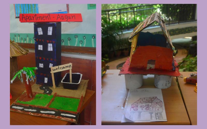 The learning process culminated in a hands-on experience where they joyfully built miniature 3D house models using recyclable materials, learning the importance of sustainability.