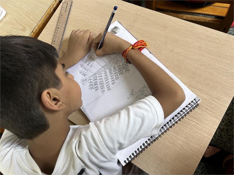 During the project 'Magic with pen ' a short story was shared with children which concluded that the life of the pencil may seem ordinary, but it holds valuable lessons about personal growth. ''Embrace your potential, sharpen your skills,embrace imperfections, leave your mark, stay resilient, collaborate, use your time wisely and reinvent yourself. Later, children wrote thoughtful write ups on 'Parable of Pen' to welcome the new member in their lives. A child wrote a beautiful poem which says, ''You will do great things only if you allow yourself to be shared. You will endure pain when your ink is refilled, but you will only become a better pen... Children gave closure by writing a goodbye letter to the pencil for staying with them like a true friend and always giving as a mark of beginning their journey in Class V where they begin to write using Pen.