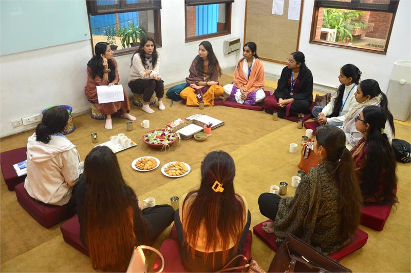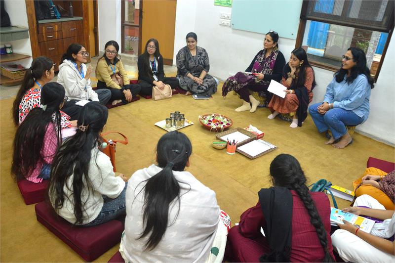After a restful summer break, didis and bhaiyas reconnected with renewed energy in a collective circle time on 3rd July 2023, a customary practice at Shikshantar. We always begin with a new thought to learn from the experienced practitioners outside Shikshantar as change makers. The day started with an absorbing and engaging session with Dr. Shelja Sen, a narrative therapist, and co - founder of Children First. As professionals working with children, it is crucial to understand how our own well-being plays a significant role in our ability to support children effectively.With conscious self-care we can stay calm in stressful situations.
