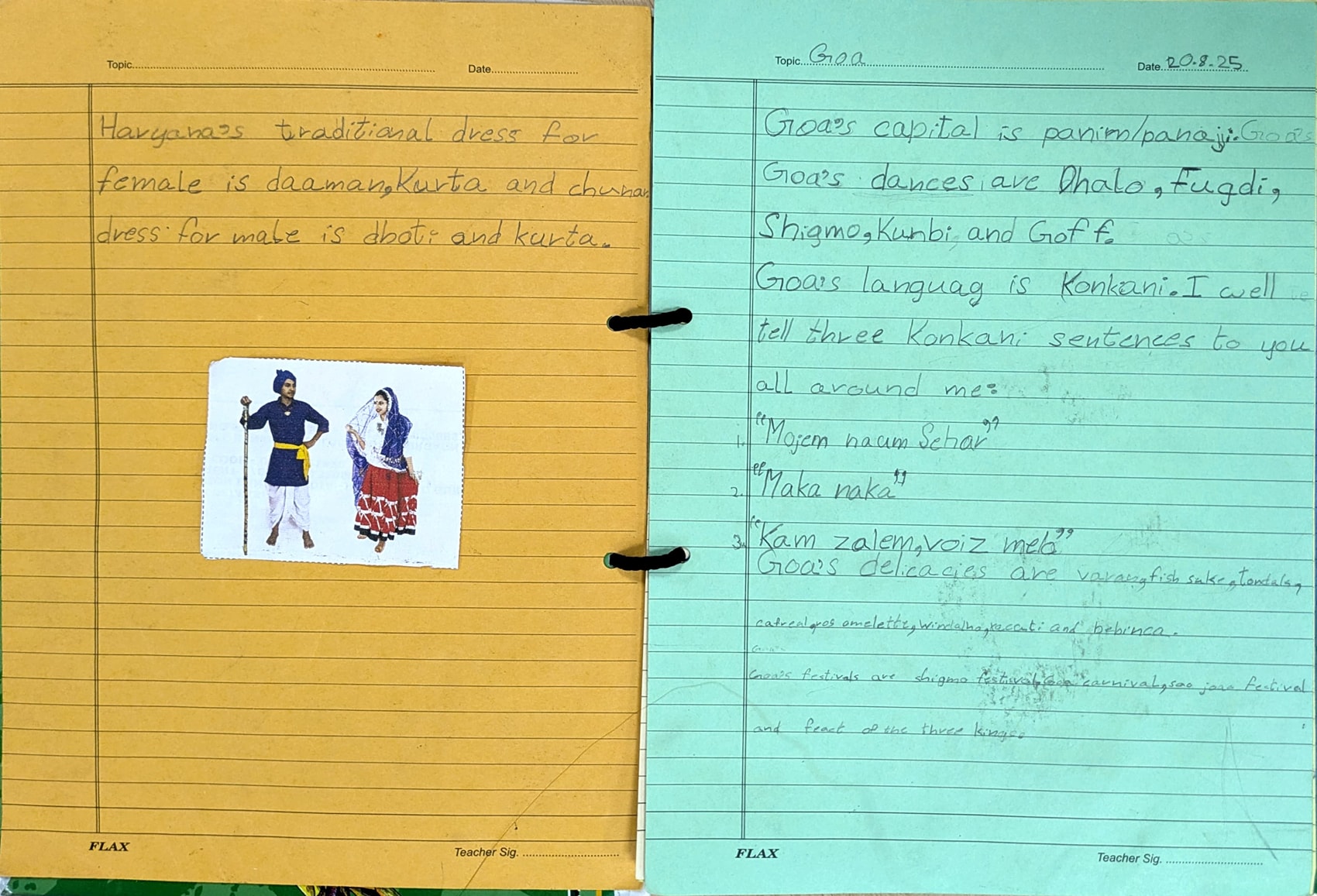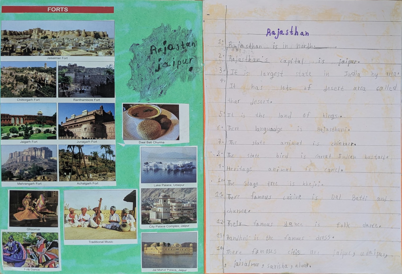 To facilitate the experience, didis and bhaiyas from different states interacted with the children to share their connect with their native places. Children then researched on the native places of their parents to prepare their own booklets on India. In an interesting activity, the children observed their body outline and related them to the boundary of India. Leading questions from the group facilitators encouraged them to develop a basic understanding of the concept of boundaries -